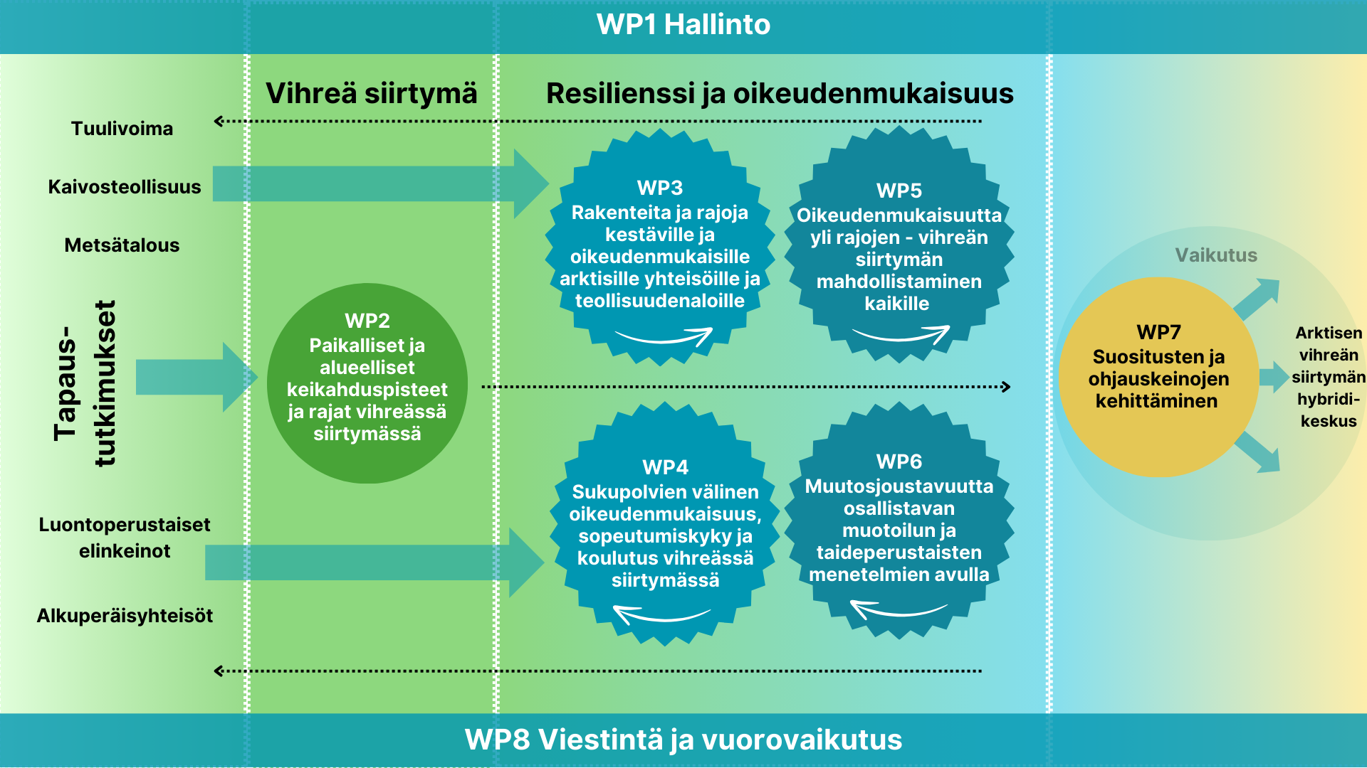 Mitä tämä käytännössä tarkoittaa pohjoissuomalaisten elämässä, maankäytön ja toimintojen suunnittelussa ja päätöksenteossa? Vastauksia varten tarvitsemme monenlaisia toimijoita ja asiantuntijoita sekä monia arvokkaita paikallisen tason näkemyksiä ja kokemuksia siitä, miten vastata vihreän siirtymän mukanaan tuomiin ympäristöllisiin, sosiaalisiin ja taloudellisiin haasteisiin.
